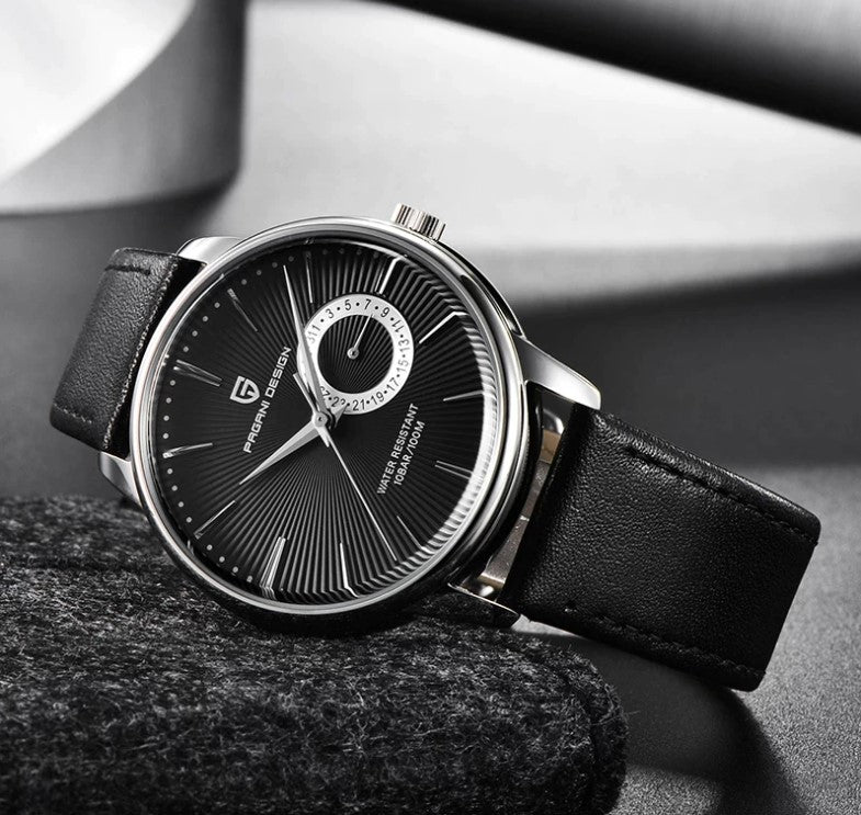 Reloj Hombre PAGANI ESTRATO Clásico Cuarzo Maquinaria Seiko Cuero Negro Genuino Cristal de Zafiro