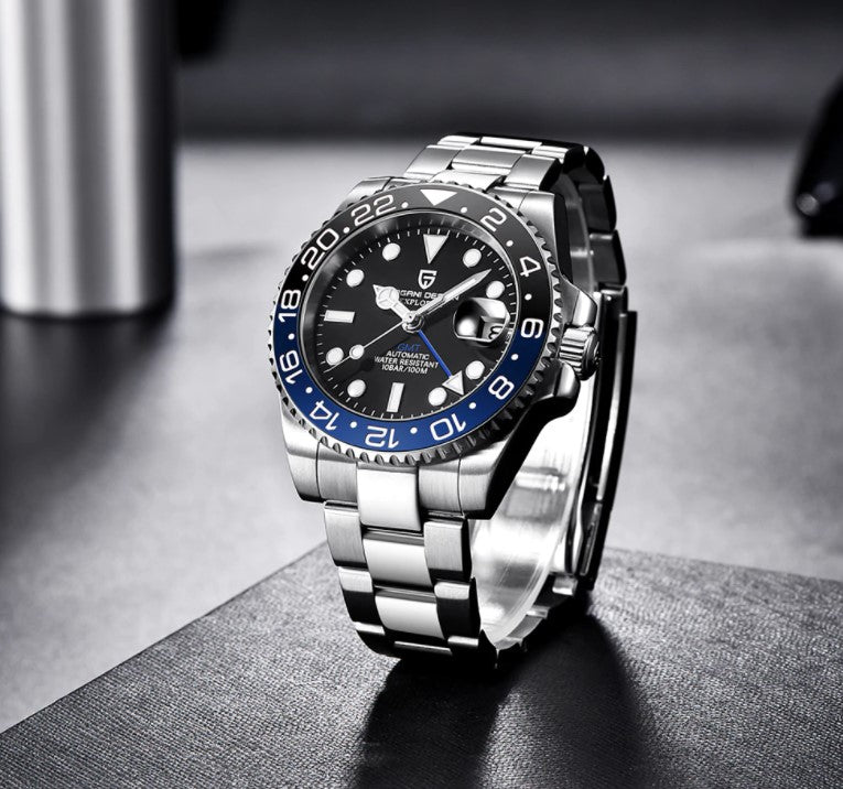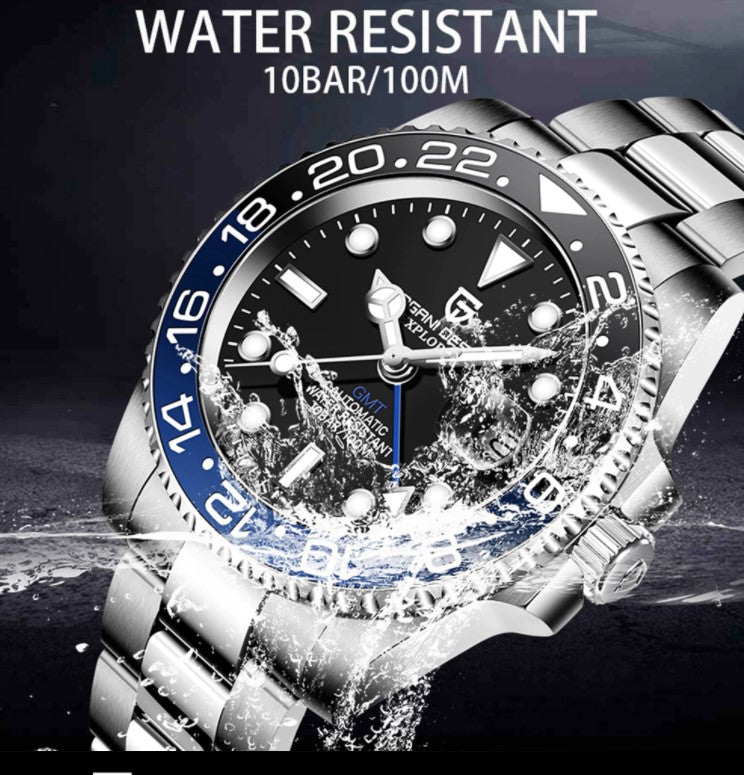 - Cuenta con Hora Mundial GMT (cuarto puntero Azul)