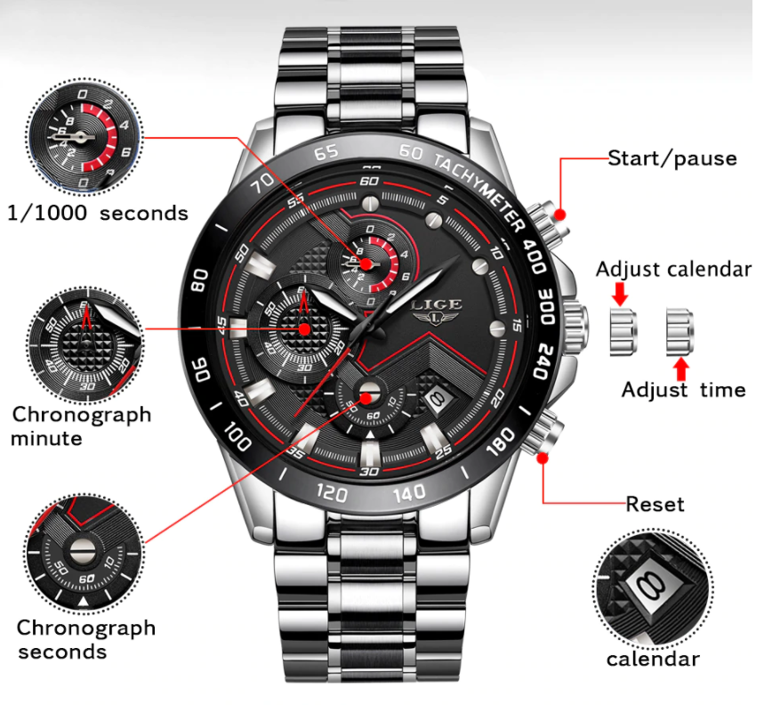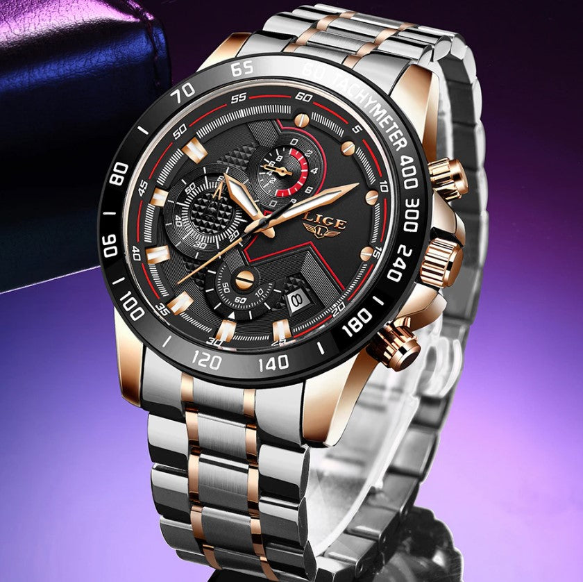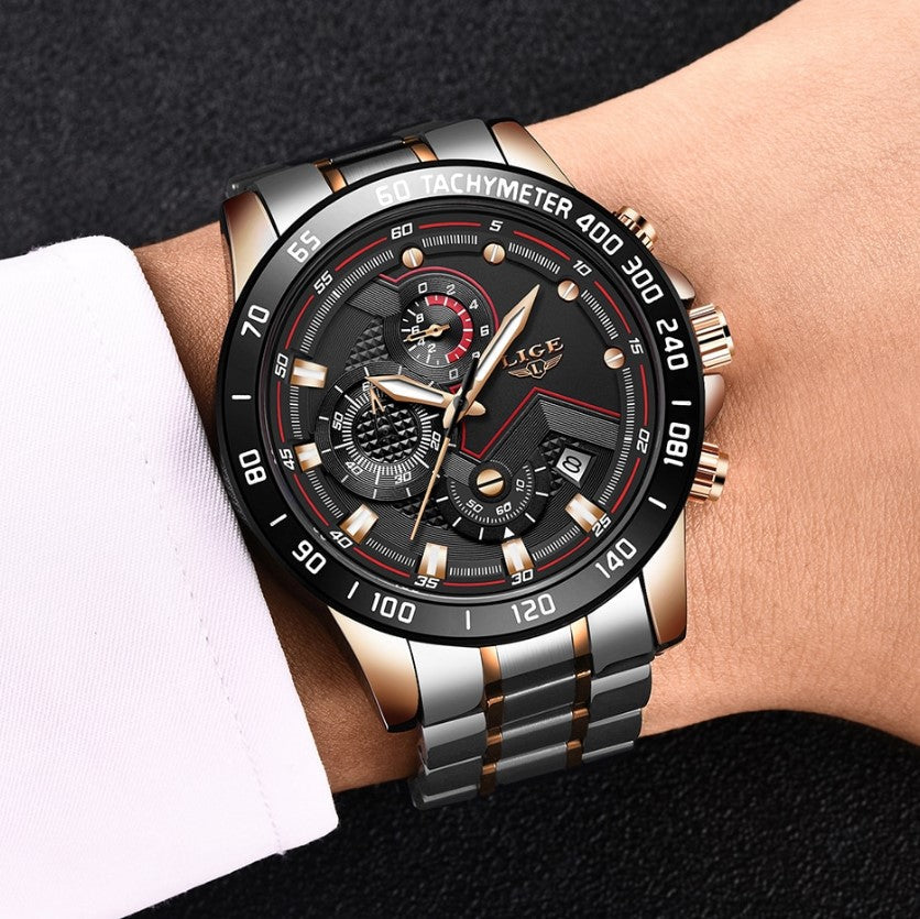 Reloj Hombre LIGE ACCURATE DORADO Cuarzo Acero Inoxidable Cristal Mineral