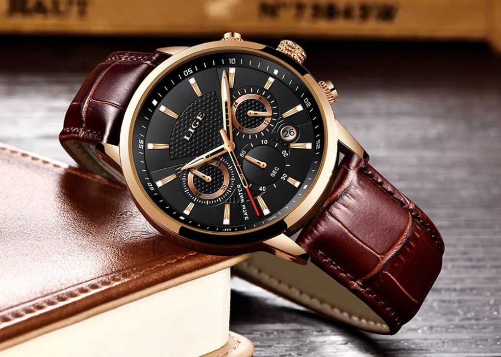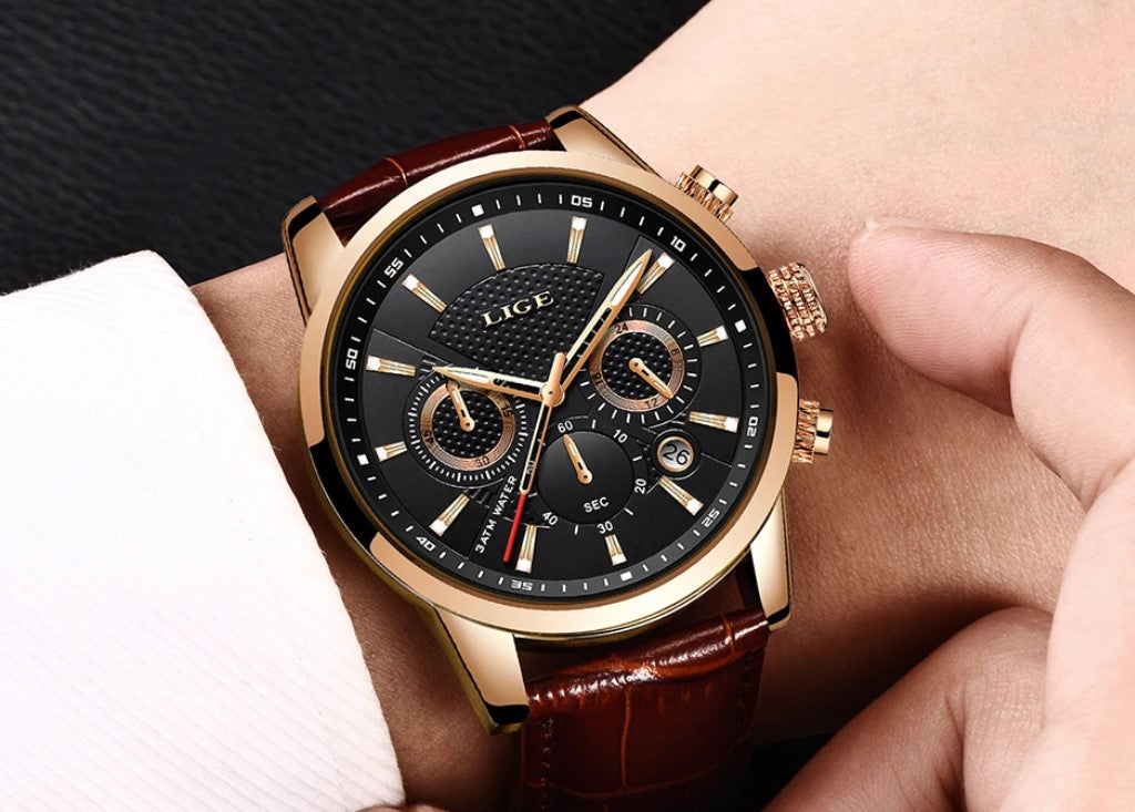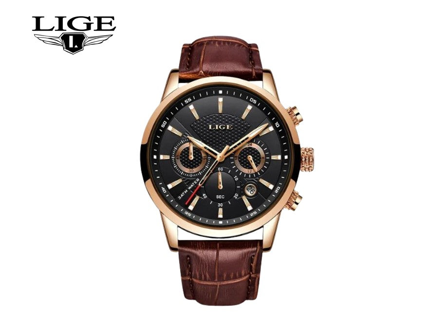 Reloj Hombre LIGE "CHRONOS BLACK GOLD" Clásico Maquinaria Cuarzo