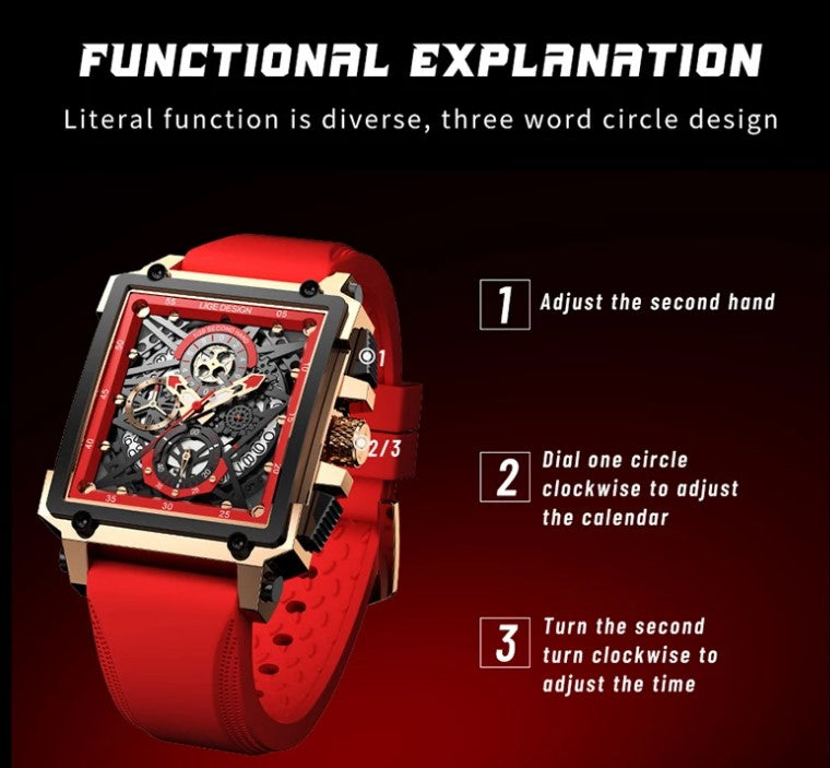 - Material Correa: Silicona Roja