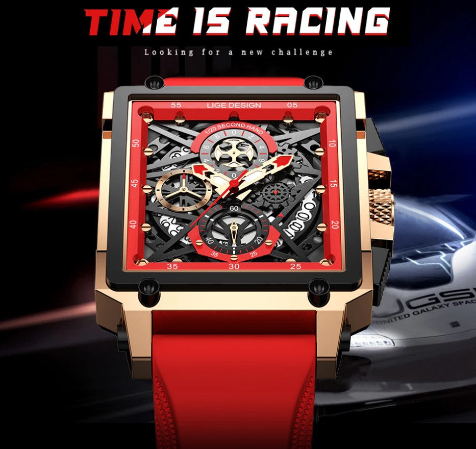 Reloj Hombre LIGE RACING Clásico Cuarzo Cristal Mineral Diamantado
